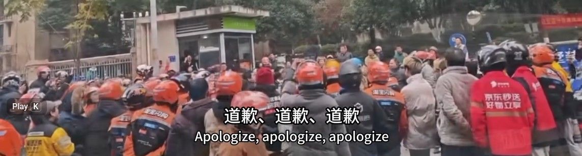 Vom 22. bis 23. Dezember kam es in Changsha (Provinz Hunan) zu Protesten, ausgelöst durch einen Immobilienbesitzer, der einen Lieferfahrer verbal beleidigt hatte. Hunderte von Lebensmittel-Lieferfahrern blockierten mehr als zehn Stunden lang den Eingang einer Anlage von Eigentumswohnungen und führten in der ganzen Stadt langandauernde Demonstrationen durch. (Quelle: siehe Video)